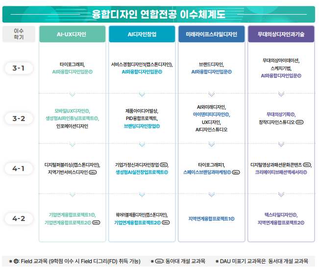 Academic 학사안내 메인으로 이동 학사안내 학교소개 입학안내 대학 대학원 학사안내 대학생활 동아광장 개교80주년 닫기 교과과정 수업 교과과정 학적 성적 졸업 비교과 과정 다전공안내 학점인정 신청 등록 장학 예비군 서비스 바로가기 닫기 글로컬연합대학 Field 연합전공 안내 전공 마이크로모듈제 안내 교과과정 안내 글로컬연합대학 Field 연합전공 안내 닫기 교과과정표 연합전공 안내 교과과정표 공지사항 자료실 QNA 닫기 학사안내 Academic 학사안내 수업 수강신청 및 수강정정 개인 강의시간표 수강신청확인서 강의실별 강의시간표 조회 재수강 안내 계절학기 등록금 고지서 계절학기 등록금 납부확인서 계절학기 수강취소 신청 시험안내 공결 안내 및 신청 학교현장실습 신청 학습관리시스템(LMS) GeLC(부산울산경남권역 이러닝지원센터) 영호남4개대학 (조선대학교) 영호남4개대학 (원광대학교) 영호남4개대학 (영남대학교) 교과과정 전공 마이크로모듈제 안내 교과과정 안내 글로컬연합대학 Field 연합전공 안내 연합전공 안내 교과과정표 공지사항 자료실 QNA 학적 휴학 복학 제적 자퇴 재입학 전과 학적조회 / 정정 성적 성적관리 기준 성적조회 강의평가 학사경고 유급 이수구분변경 졸업 졸업기준 안내 졸업논문 학사학위취득 유예 조기졸업 비교과 과정 비교과 홈페이지 바로가기 다전공안내 다전공 이수방법 요약 다전공 개요 복수전공 부전공 연계전공 자기설계연계전공 융합전공 교양 학사학위과정 학점인정 신청 특별학점 인정 사회봉사학점 군복무 중 취득학점 인정 등록 등록금 납부 안내 등록·장학 내역 조회 등록금 납입확인서 교육비 납입증명서 등록금 분할납부 신청 장학 장학 공지사항 장학 규정 및 지침 국가장학금 안내 학자금 대출 안내 장학금 인터넷 신청 장학내역 조회 장학금수혜확인서 예비군 예비군 훈련 안내 예비군 신고 안내 공지사항 서비스 바로가기 2026학년도 1학기 수강신청안내 대학일자리플러스센터(인재개발과) 학생군사교육단 학사안내 FAQ 전공 마이크로모듈제 안내 교과과정 안내 글로컬연합대학 Field 연합전공 안내 글로컬연합대학 Field 연합전공 안내 SNS 목록열기 FACEBOOK 공유하기 TWITTER 공유하기 BLOG 공유하기 KAKAO STORY 공유하기 SNS 목록닫기 인쇄 url 복사 연합전공 안내 교과과정표 공지사항 자료실 QNA 수소에너지 연합전공 교과과정표전력반도체 연합전공 교과과정표첨단콘텐츠 연합전공 교과과정표융합디자인 연합전공 교과과정표휴먼메타케어 연합전공 교과과정표헤리티지콘텐츠 연합전공 교과과정표